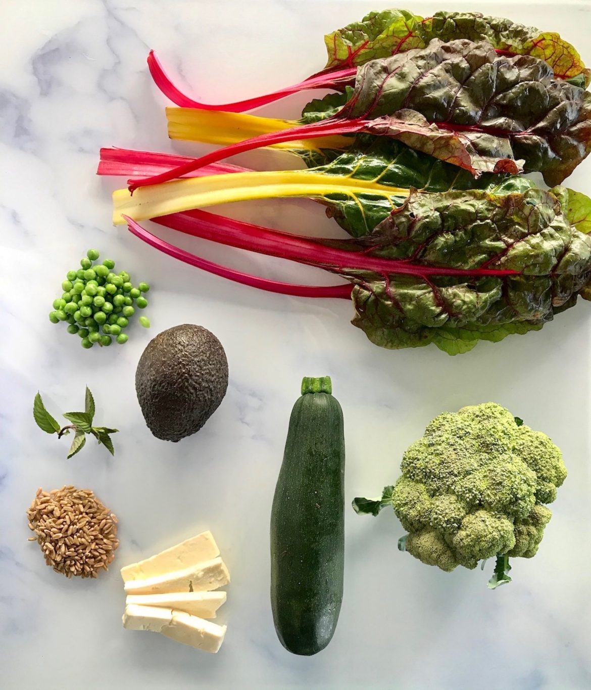 • Währenddessen die Zucchini in Streifen schneiden. Dann mit in die Pfanne geben und mit Kreuzkümmel würzen. Danach die Brokkoliröschen dazugeben. Sobald das Gemüse bissfest ist (nach ca. 5 Minuten), die geschnittenen Mangoldblätter (ohne Stengel) in die Pfanne geben.